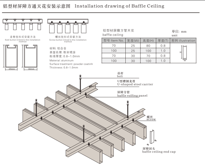 U型(型材)方通天花